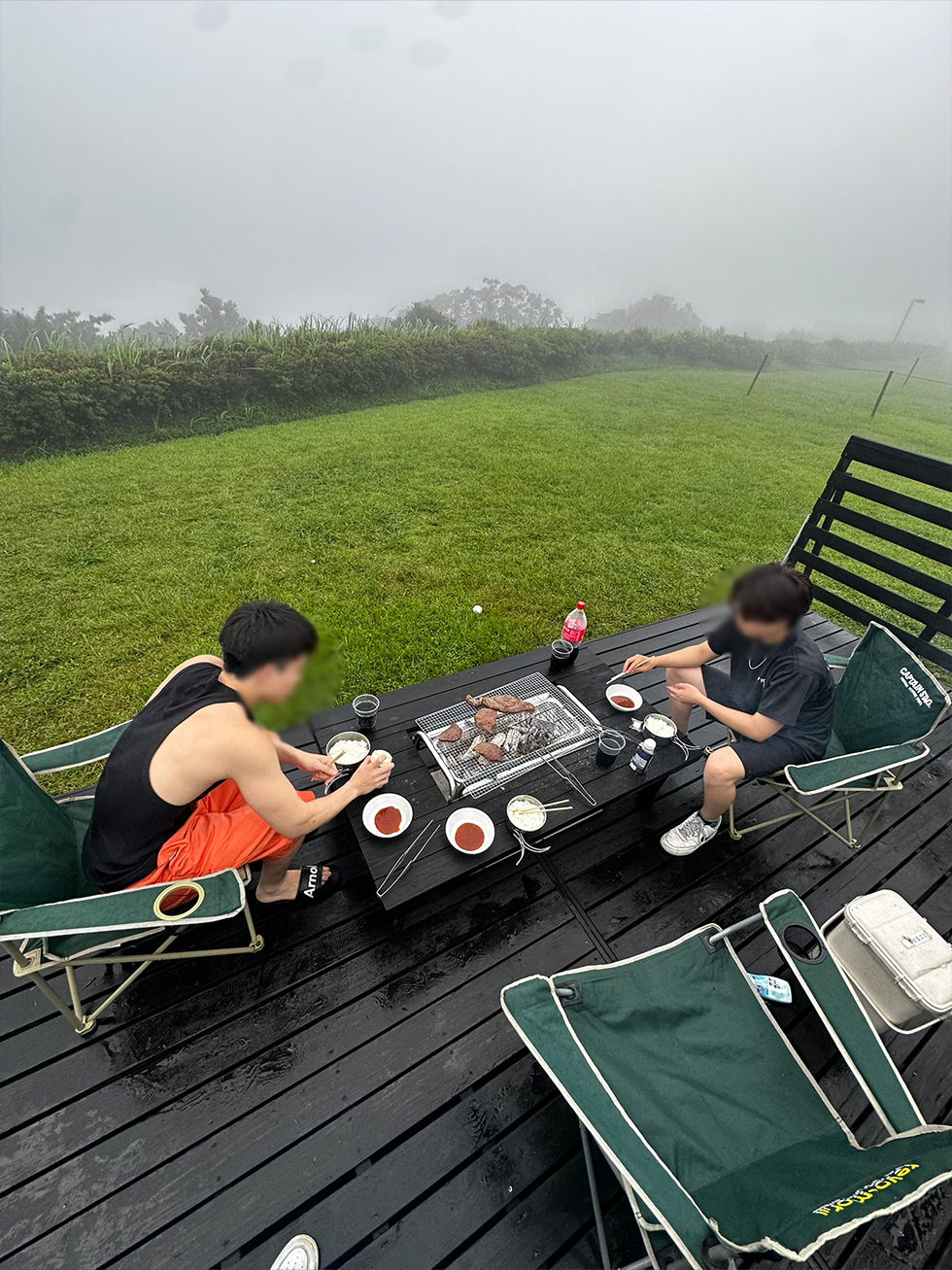 一番のウリであった、桜島と夜空なんてものは、なーーーんにも見えませんでした!^^ 小雨の中強行BBQとキャンプファイヤーをして、、渋々就寝。