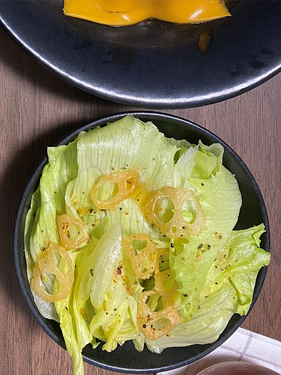 ちなみにサラダにもレンコンの骸骨をおきました。