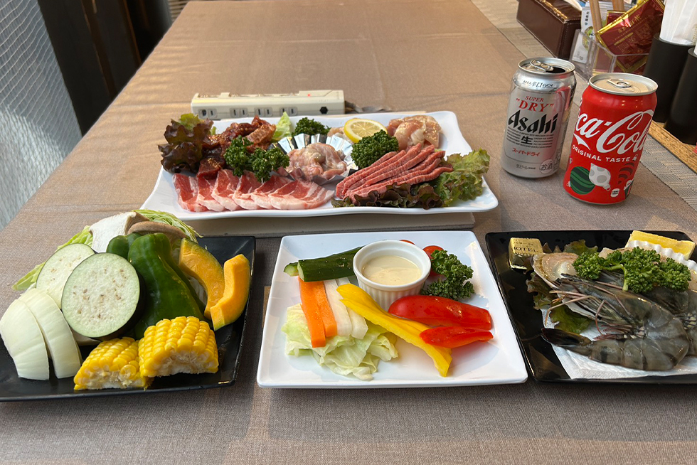 先日のお休みに霧島市にあるこしかの温泉グランピングに行ってまいりました。お部屋の冷蔵庫の中にあるお酒やジュースが飲み放題なのと豪華なお肉や海鮮、野菜などのバーベキューを楽しみました。