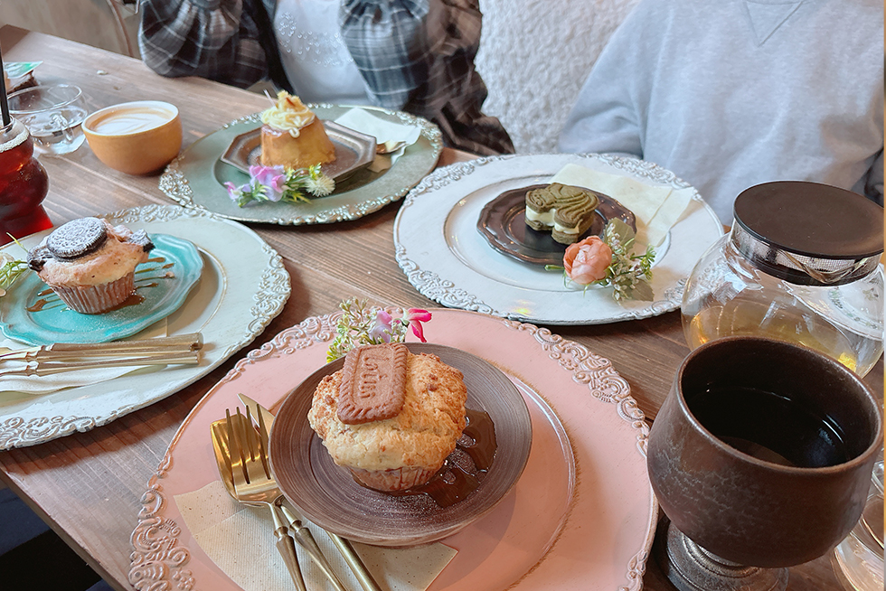 喫茶店でコーヒータイムを挟み、3時のおやつには天文館のカフェでマフィンとコーヒーを堪能し、雰囲気の良い空間で女子会の話にも花が咲きました🌷