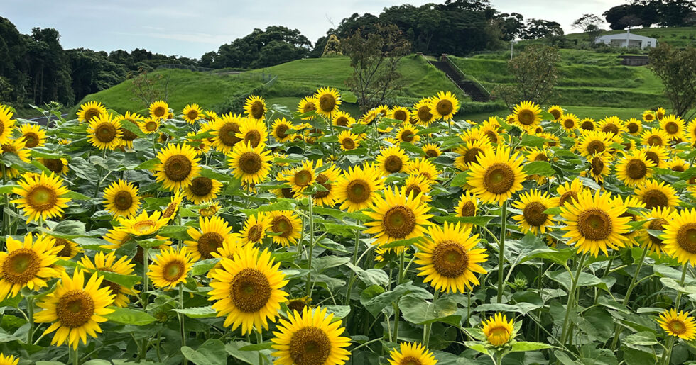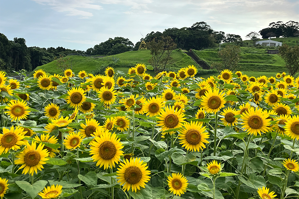 かのやばら園がちょうどひまわりが見られるタイミングだったので、