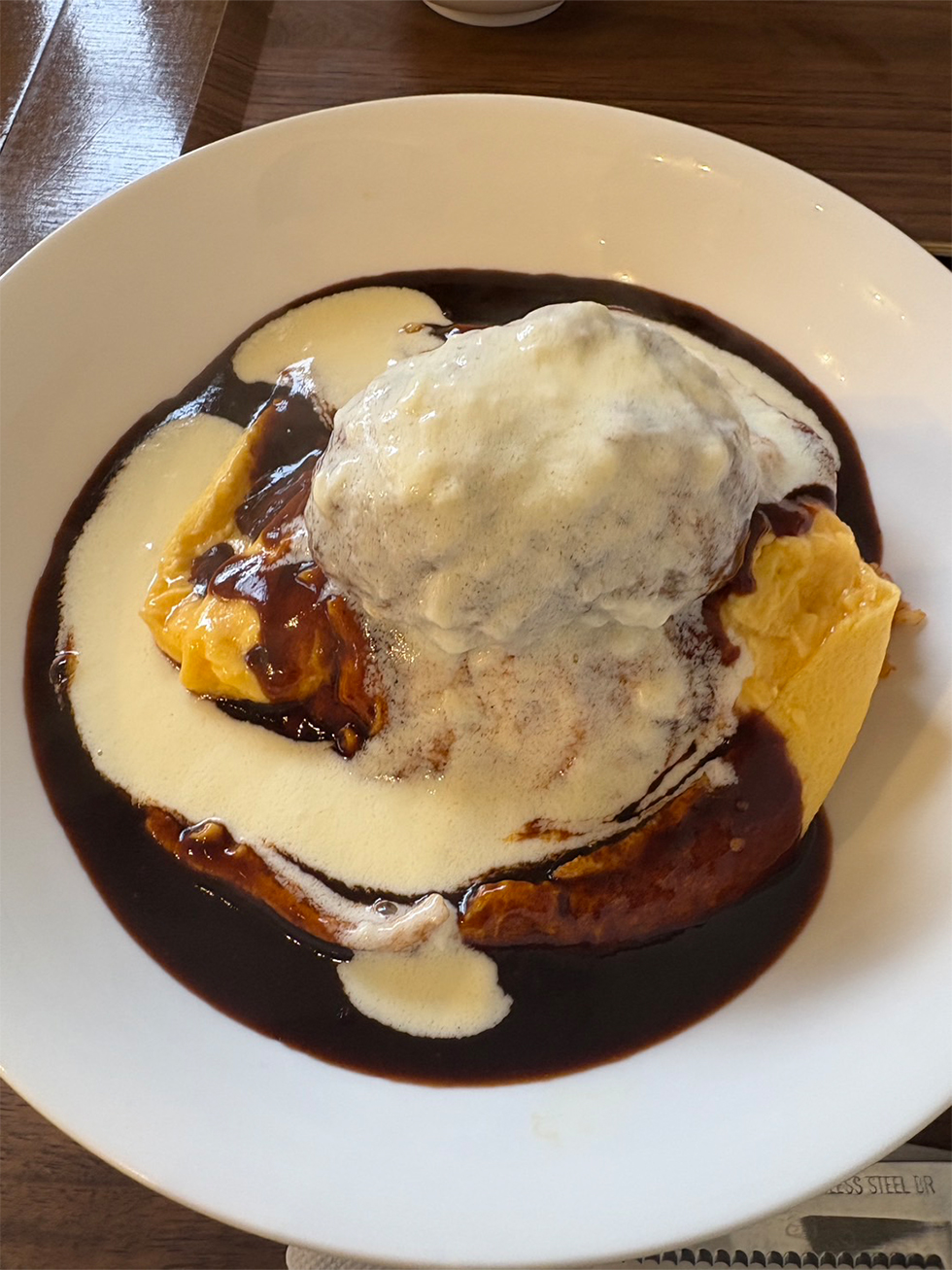 オムライスが美味しいお店でなんと目の前で卵をパッカーンと切ってくれます。