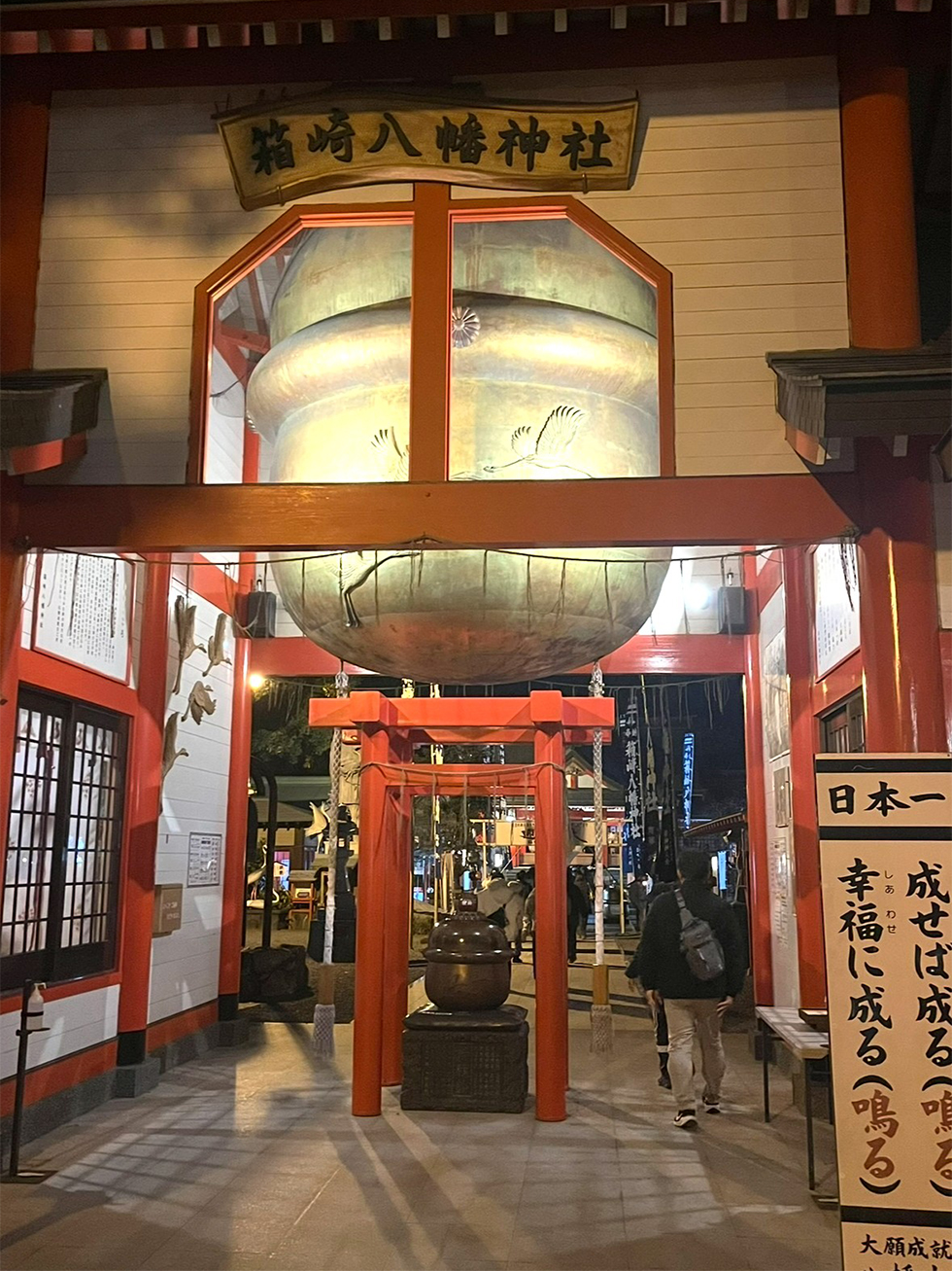 除夜祭では、日本一大きな鈴があることで有名な箱崎八幡神社へ。