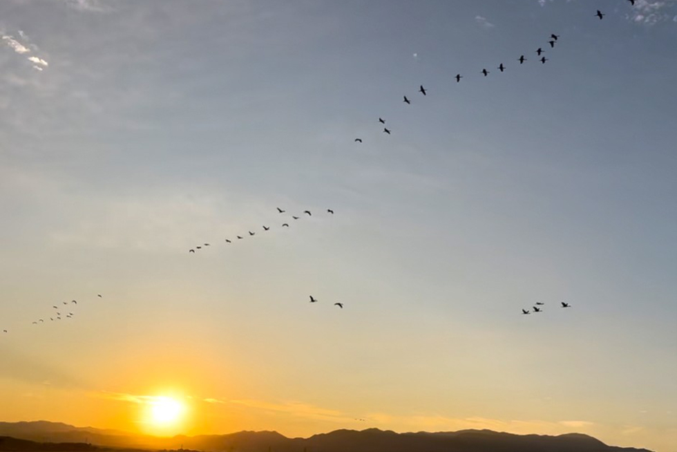 そして初日の出では、鶴のねぐら立ちの様子を見学しました!