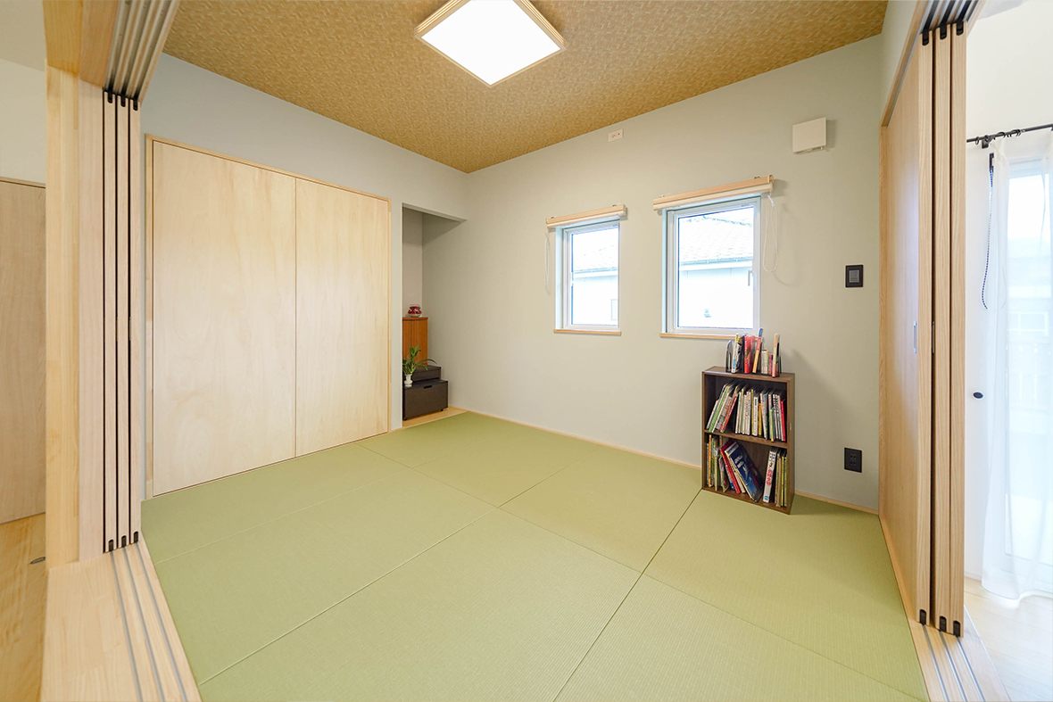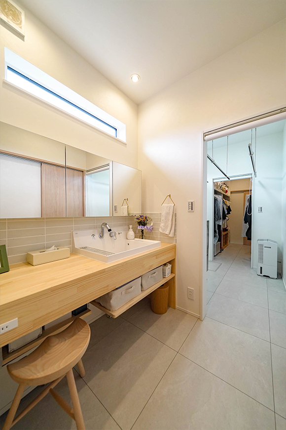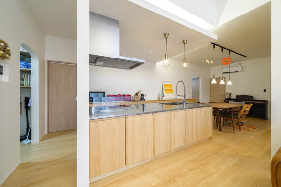 106.木のぬくもり感じる和モダンハウス 都城市 ナチュラル モダン 平屋 ツイート 金属系のガルバリウム×和テイストのデザインでカジュアルさを残した和モダンな外観に! コンパクトなサイズ感の玄関は、框を斜めにカットすることで広さと奥行きが生まれます。 室内は天然木をふんだんに使用している為、LDKは経年変化を考慮した採光計画に。 木の温かみを感じられるキッチン。木材でも簡単にお手入れができる特殊加工が施されています。 就寝時には寝室、日中は和室と臨機応変に使用ができるムダのない空間。 S.C.Lからの帰宅動線上にあるパントリー。荷物をすぐに運び込めるのが嬉しい楽カジポイント! 木の素材感をふんだんに生かした造作の洗面化粧台。 万が一洗濯物がたまっても余裕をもって干せるよう、ハンガーパイプは3列設置いたしました。 ウォークスルータイプのファミリークロゼット。水回りと隣接してぐるぐる回遊できる動線になっております。 くすみブルーの塗り壁が可愛い約1帖のトイレ。収納棚の代わりにニッチを設けました。 リビング手前側にはスタディスペースを設置。テレビボードで仕切られて程よくおこもり感が演出されております。 マイホームストーリー 移住のタイミングでお家づくりを始められたオーナー様。生活動線を第一に考えた平屋を建築されました。 今回のお住まいは、全体に天然木を取り入れることで「木の温かみ」を感じられる心地よい空間に仕上がりました。また、デザイン性だけでなく間取りにもこだわり、家事動線や帰宅動線を回遊動線で設計いたしました♪ そんなオーナー様絶賛のこだわりハウスのご紹介です!! 実際のモデルハウスを見学する 新築発表会随時開催中!イベント情報